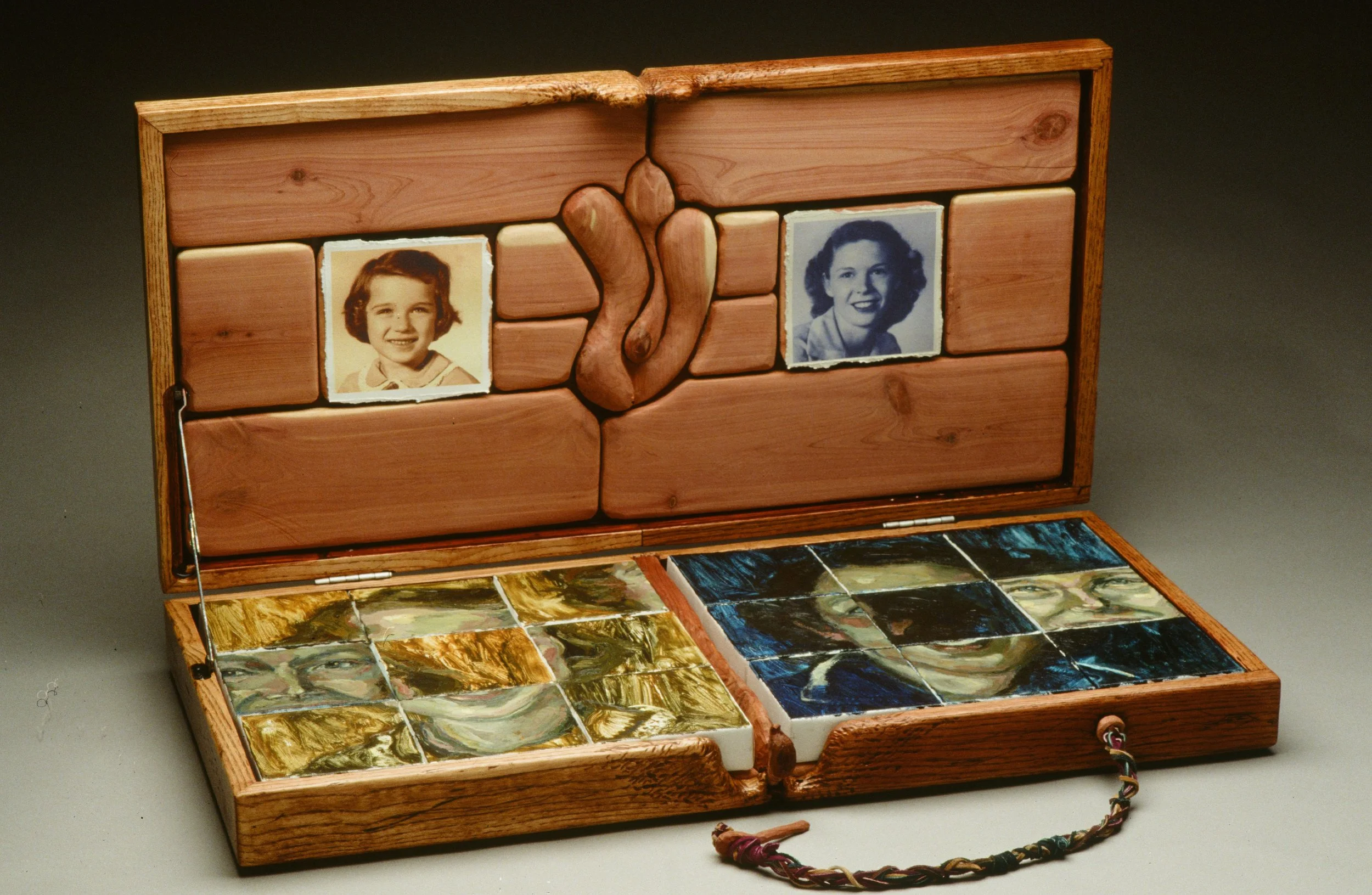 My Mother Myself, Oak, Paper Leather, oil on canvas portraits