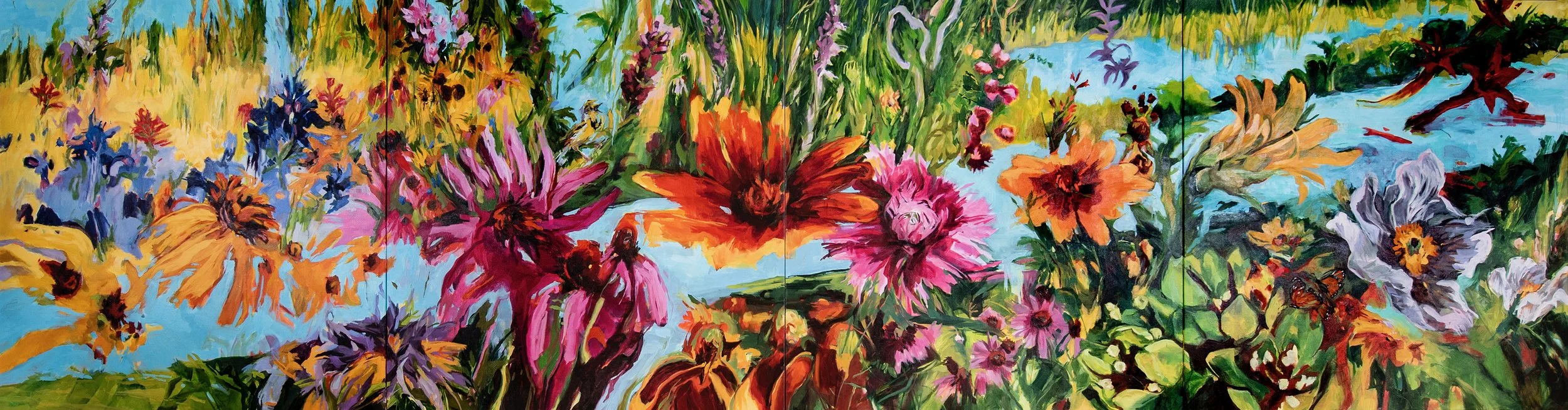 Prairie Pandemonium, 52” x 200” 4)52x50” panels, oil on canvas