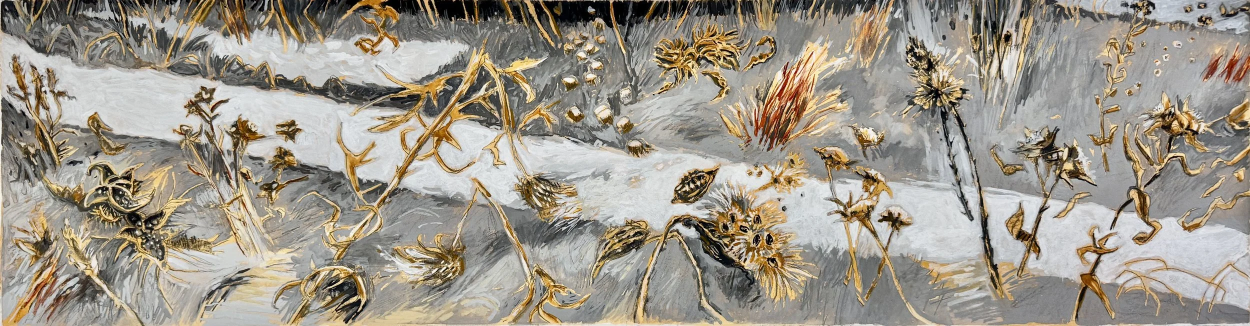 Prairie Lace Gouache, 7 x 15 in, gouache on Canson Board