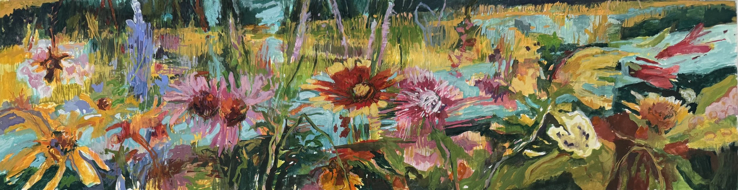 Midsummer Ponds Gouache, 7 x 15 in, gouache on Canson Board
